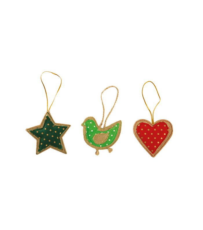 Add a touch of rustic charm to your holiday decor with these Christmas Hanging Ornaments made from a delightful blend of jute and cotton. Featuring classic shapes like stars, hearts, and birds, these ornaments are embellished with subtle polka dot patterns and golden accents, adding a festive sparkle to any setting. Each ornament is designed with a convenient loop for easy hanging on Christmas trees, garlands, or decorative displays. Measuring 14x14cm, 12x10cm, and 11x11cm, these ornaments can be customised to match your brand's colours or festive themes. Perfect for businesses looking to offer unique, eco-friendly holiday gifts or promotional items that leave a lasting impression.