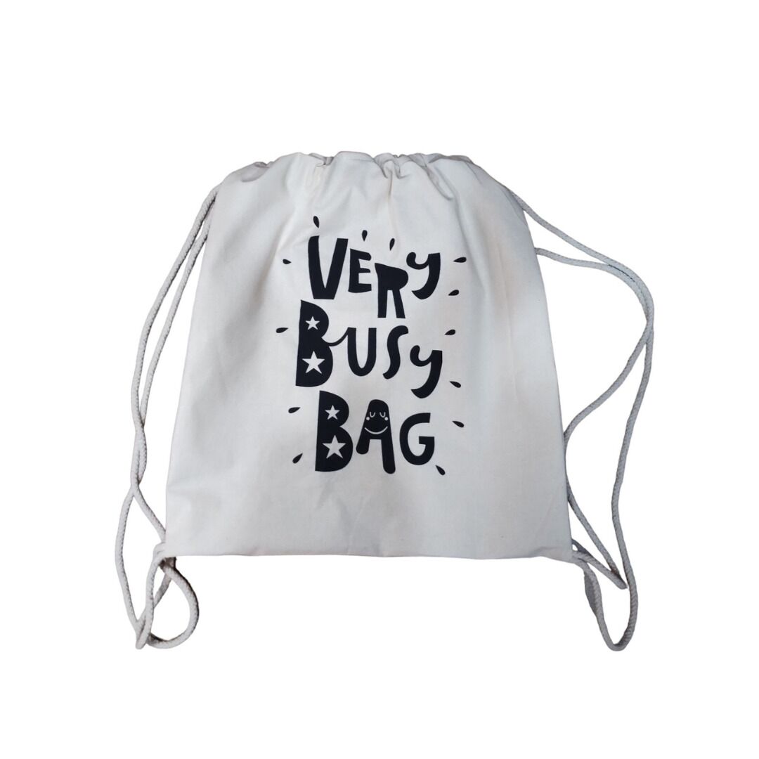 Our Monochrome Drawstring Backpack, crafted from high-quality calico, is the perfect versatile choice for businesses looking to showcase their brand or message. The bag's simple yet stylish monochrome design provides a clean canvas for customisation—replace the "Very Busy Bag" logo with your own company logo, slogan, or unique artwork. The backpack measures 38x42 cm, but we offer complete size customisation to fit your specific requirements. Ideal for events, giveaways, and promotional activities, these durable, eco-friendly bags are a sustainable option that aligns with modern branding needs.