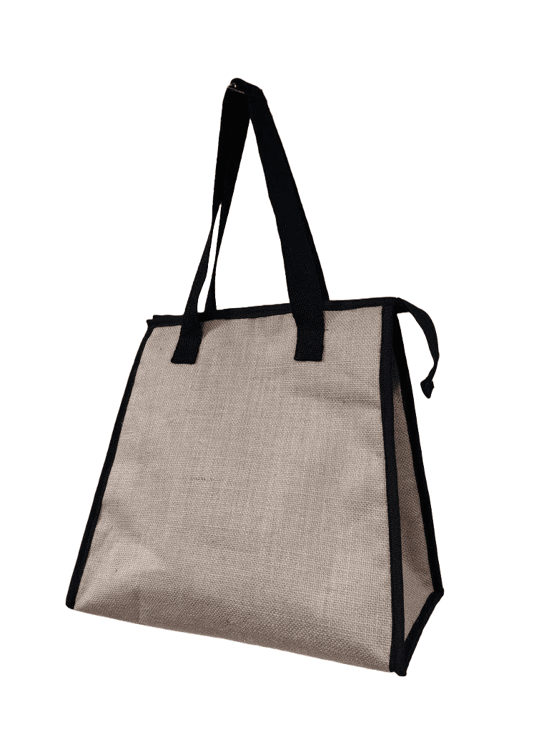 Eco-conscious, practical, and ready to go—this plain tapered cooler bag is made from durable jute with a sleek black trim, offering a clean and professional look for everyday use.