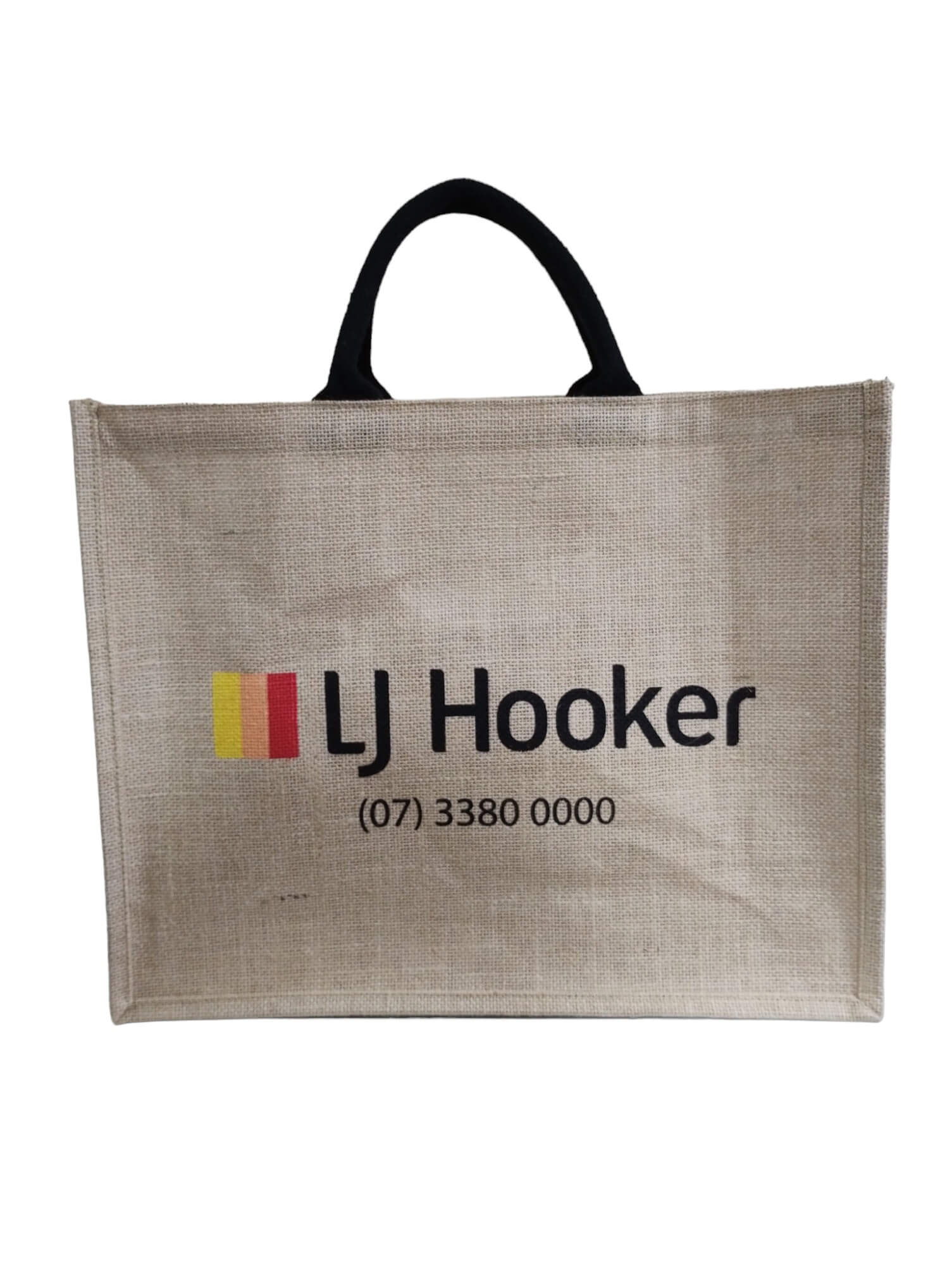 Make your brand memorable at every property handover or local event with the Real Estate Franchise Marketing Bag With Store Contact Number. Crafted from durable jute and sized at 42.5x19x34cm, this custom-branded bag is both practical and promotional. With bold franchise branding and clear contact details on the front, it’s ideal for reinforcing your presence in the community. Perfect for agencies looking to combine sustainability with standout marketing, this bag can be fully tailored to suit your office colours and logo. A great option for welcome packs, brochures, or settlement day gifts.